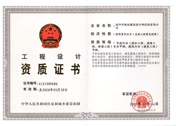 4月18日,住建部發(fā)布第52號(hào)公告《住房城鄉(xiāng)建設(shè)部關(guān)于核準(zhǔn)2018年度第三批建設(shè)工程企業(yè)資質(zhì)資格名單的公告》,公司橋梁工程、排水工程設(shè)計(jì)資質(zhì)順利通過審查成功晉升為甲級(jí)資質(zhì),這是公司繼道路工程資質(zhì)升甲之后資質(zhì)升級(jí)增項(xiàng)工作的又一重大突破。